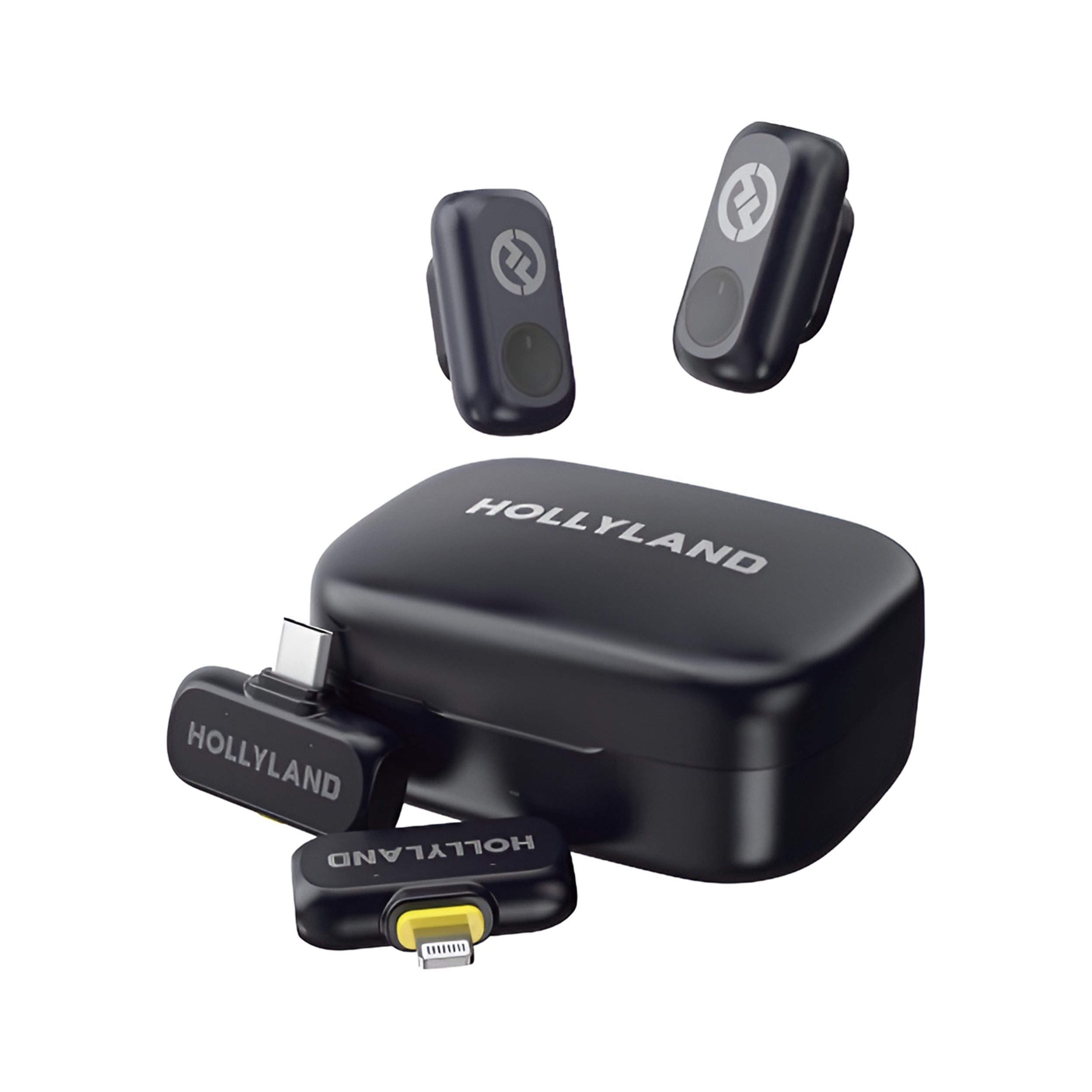 The Hollyland LARK A1 Combo is a dual-channel, digital wireless microphone system engineered for effortless smartphone connectivity and plug-and-play operation—ideal for streaming, vlogging, podcasting, and video production with two people speaking at the same time. The system includes two ultracompact, clip-on transmitters with built-in omnidirectional microphones for discreet, high-quality recording, and Lightning and USB-C plug-in receivers for direct use with iOS and Android devices, two furry windscreens for outdoor shoots, and a convenient charging case.